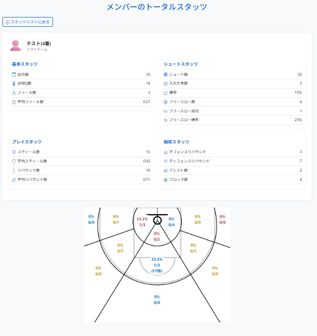 「チーム全体の成長を見える化」しませんか?選手ごとのスタッツ記録、チーム平均との比較、練習課題の抽出など、分析に強いhoop-hubが、戦術の改善や育成のヒントを提供します。